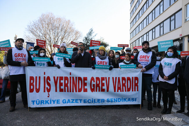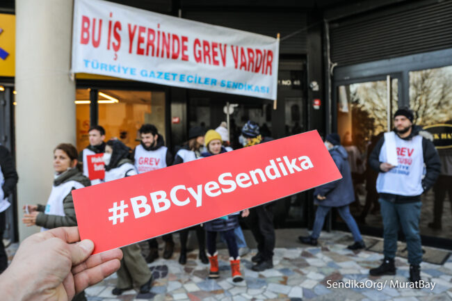 Türkiye Gazeteciler Sendikası (TGS), BBC İstanbul bürosunda çalışan gazeteciler adına 9 Ağustos 2021 tarihinde başlayan toplu iş sözleşmesi görüşmelerinde anlaşma sağlanamaması üzerine bugün grevi başlatırken, işyerine “Bu işyerinde grev vardır” pankartı asıldı.